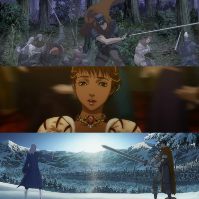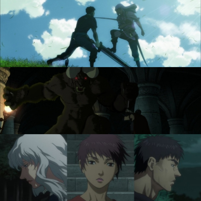 예전부터 명성은 익히 들어왔기에 'Berserk'라는 제목은 낯설지 않았지만, 이 정도로 어두운 분위기의 애니메이션은 참으로 오랜만인 것 같다. 피가 낭자하는 잔혹함, 높은 성적 수위와 더불어 고어하기까지 한 이 애니메이션 시리즈를 보고나면 많은 이들이 절망감이 느껴진다고 했는데, 나도 마찬가지로 보고 난 뒤 썩 유쾌하지 않았던 시리즈였다.(특히, 3편이 절정..)
