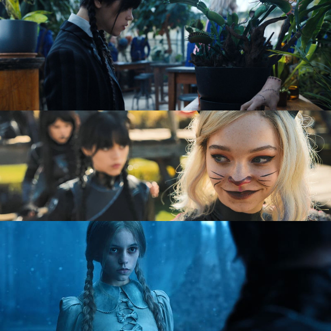 특히나 주인공인 'Wednesday'는 그런 분위기와 너무나도 잘 맞는 성격의 소유자라서 그런지 드라마 내내 보여주었던 대사와 행동은 더없이 매력적이었다. 가끔은 직설적이고 독단적인 모습에 고개를 갸웃거리게 만들기도 했지만 그때마다 내 마음에 활기를 불어주었던 'Thing'과 'Enid'의 모습에 드라마는 지루할 틈이 없었던 것 같다.