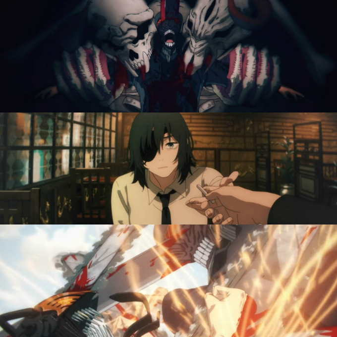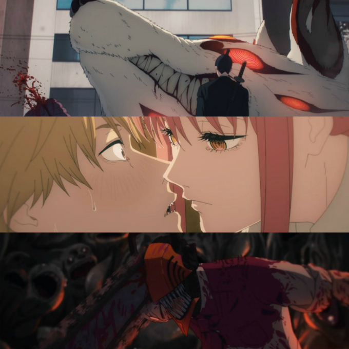 일단, 나는 이 애니메이션의 아무런 정보 없이 'Chainsaw Man'의 극장판인 '레제편'에 흥미를 가지게 되어, '레제편'의 이전을 다루었던 'TVA'과 '총집편' 중 어떤 것을 볼까 망설이던 중에.. 원작 팬들이 작품에 입문하고 싶다면 'TVA'보다 '총집편'으로 보는 것을 추천한다 하여, '총집편'을 먼저 살펴보게 되었다. 단, 나 같이 '총집편'을 보는 이들이 있다면, '레제편'으로 바로 이어지는 'TVA' 12화의 마지막 부분이 모두 편집되었기에 극장판인 '레제편'을 보려면 '총집편' 시청 후 12화의 마지막 부분을 따로 챙겨 보는 것이 좋다.